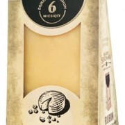 Its production process was developed back in 2002. It has been named after the amber gemstone and, as such, has been shaped by time and nature to reach excellence. It owes its unique taste and flavour to the ageing process of as long as six months. Over this time, each circle of cheese is nurtured and rubbed manually on a regular basis with a specially selected paste. The substance keeps the cheese at its best and adds distinguished colour and flavour. What makes this cheese stand out is its brittle structure and easily detectable crystals of amino acids, the quantity of which increases with ageing.